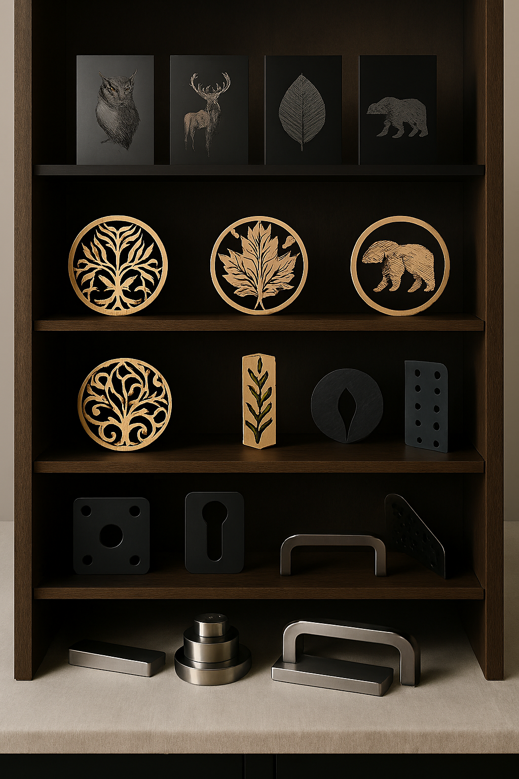 - Inne: skóra ekologiczna, korek, laminaty grawerskie, karton, cienkie tkaniny Czyste krawędzie bez zwęglenia, wysoka dokładność – doskonałe do dekoracji, tabliczek, elementów mebli i gadżetów.